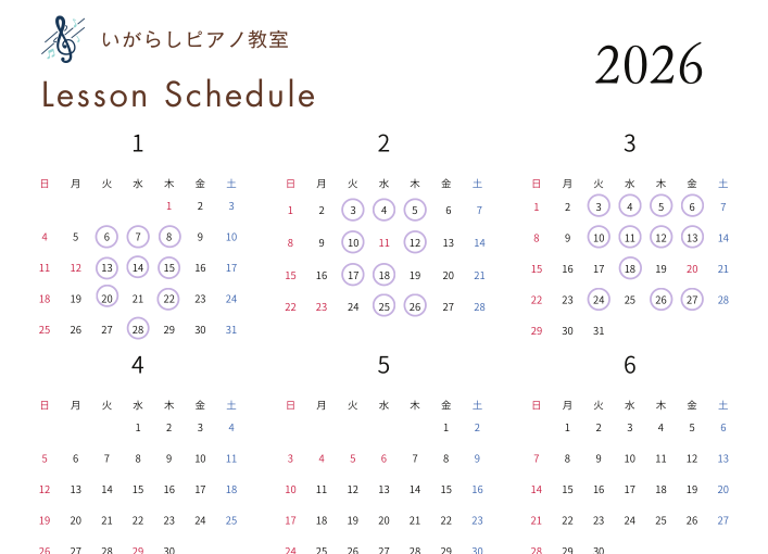 2月、3月のレッスン予定